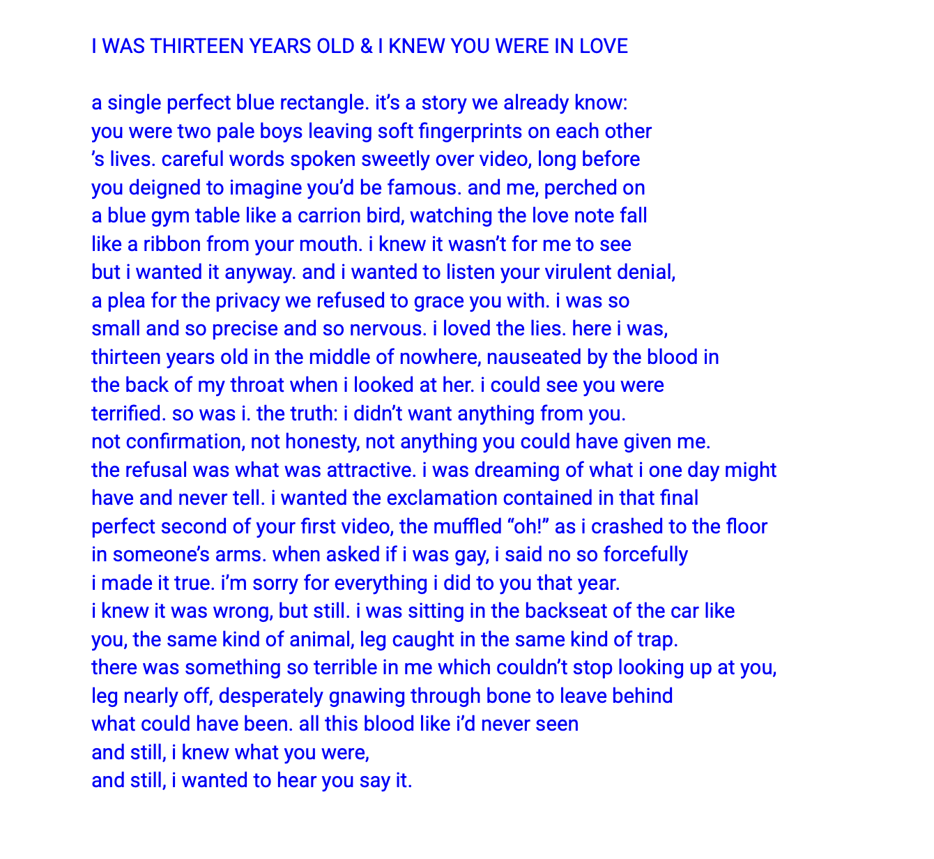 I WAS THIRTEEN YEARS OLD AND I KNEW YOU WERE IN LOVE