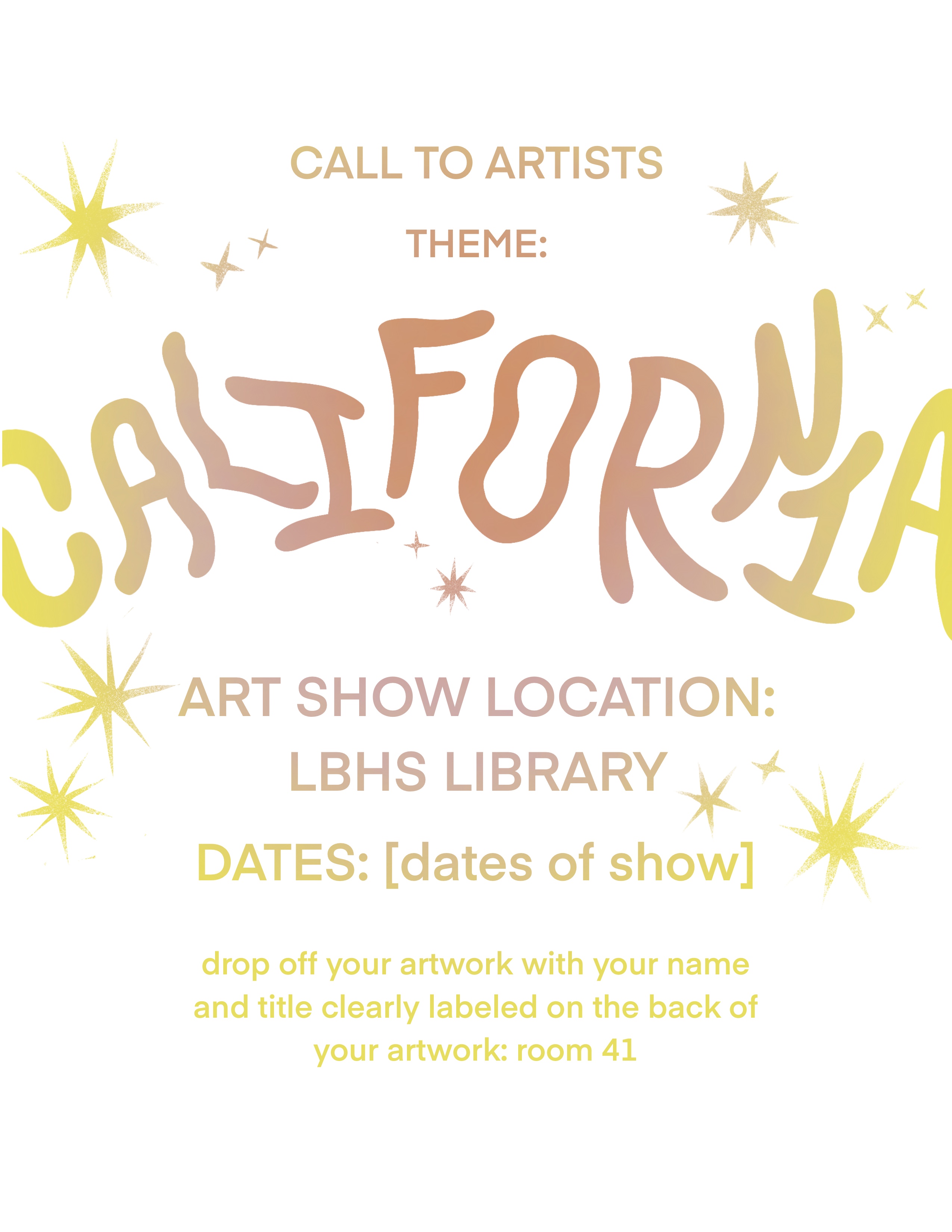 poster, alternate poster, and call to artists for the LBHS art show CALIFORNIA (2021)