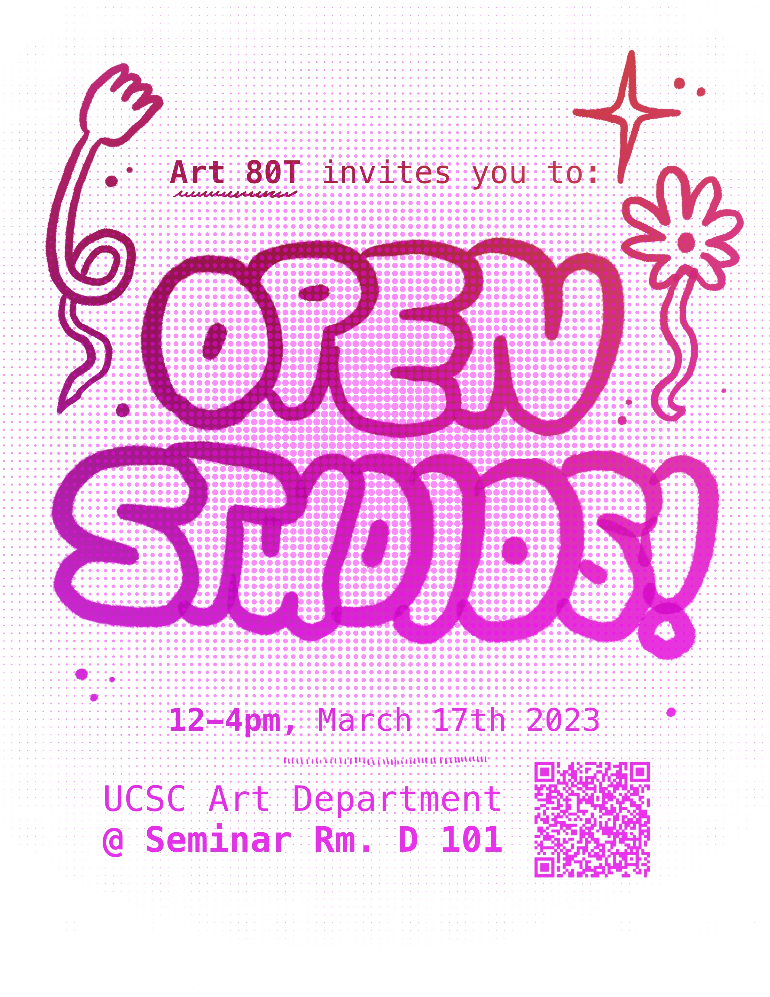 poster for the winter 2023 ART 80T (digital tools for contemporary artists) open studio show (2023)