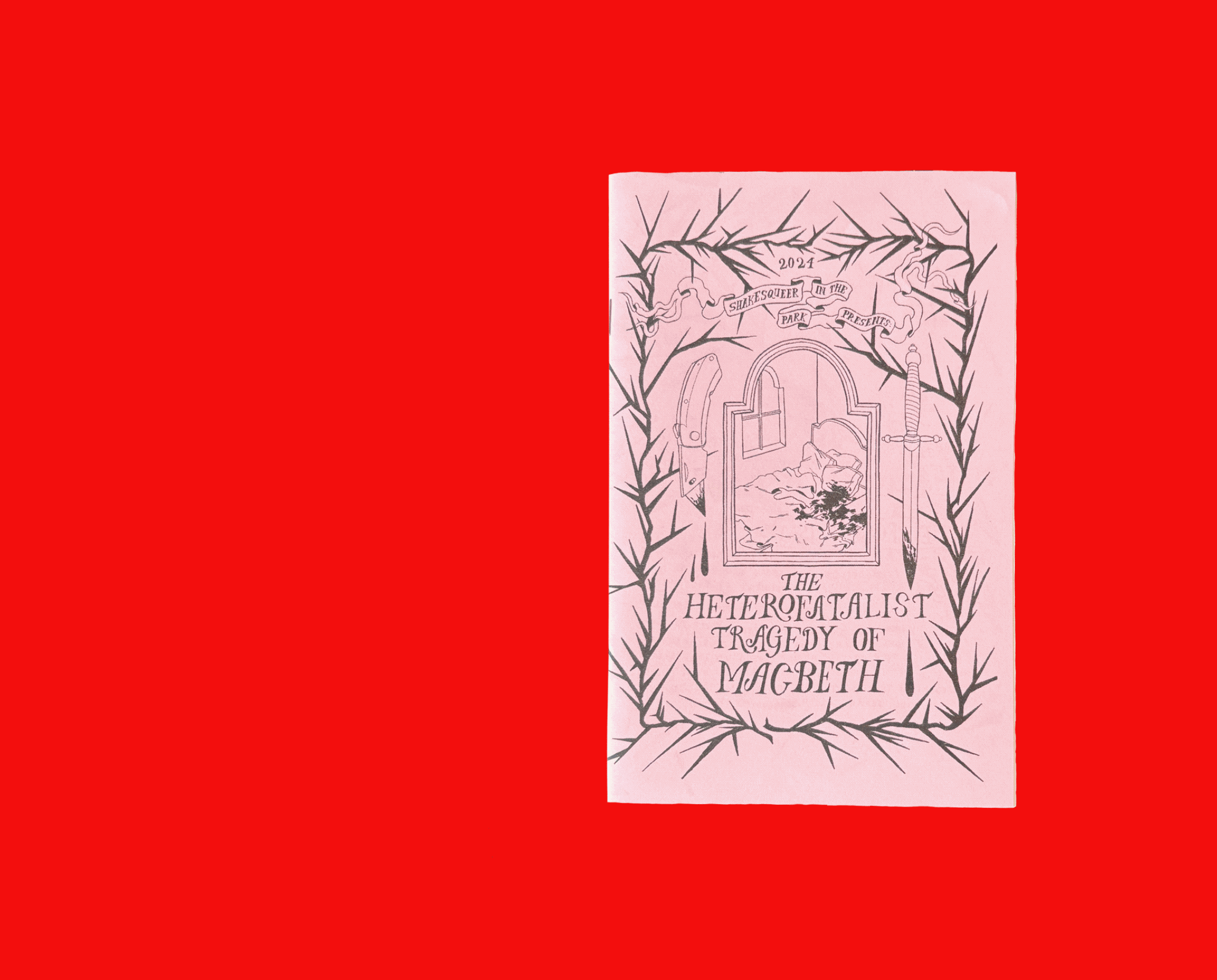 Program/zine designs for “The Heterofatalist Tragedy of Macbeth,” 2024