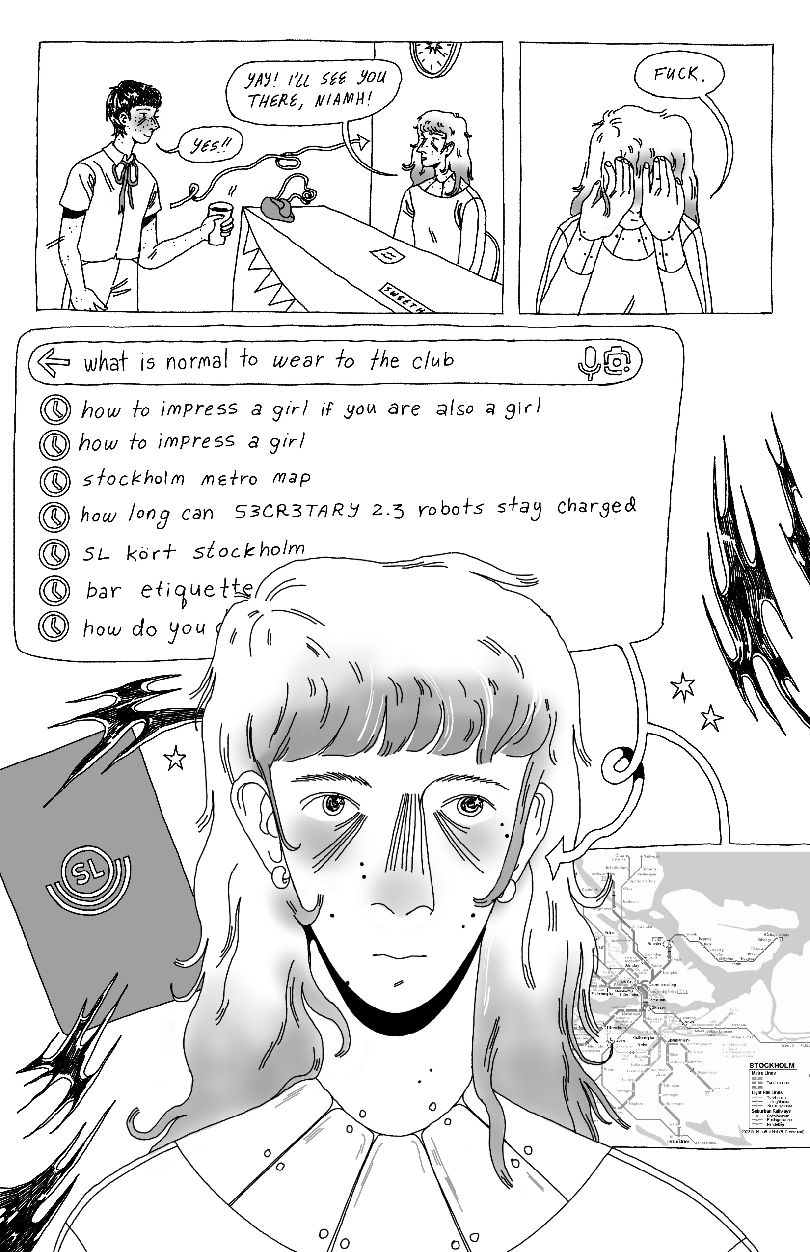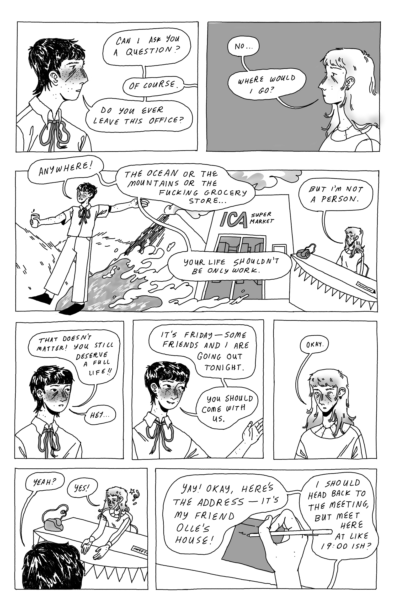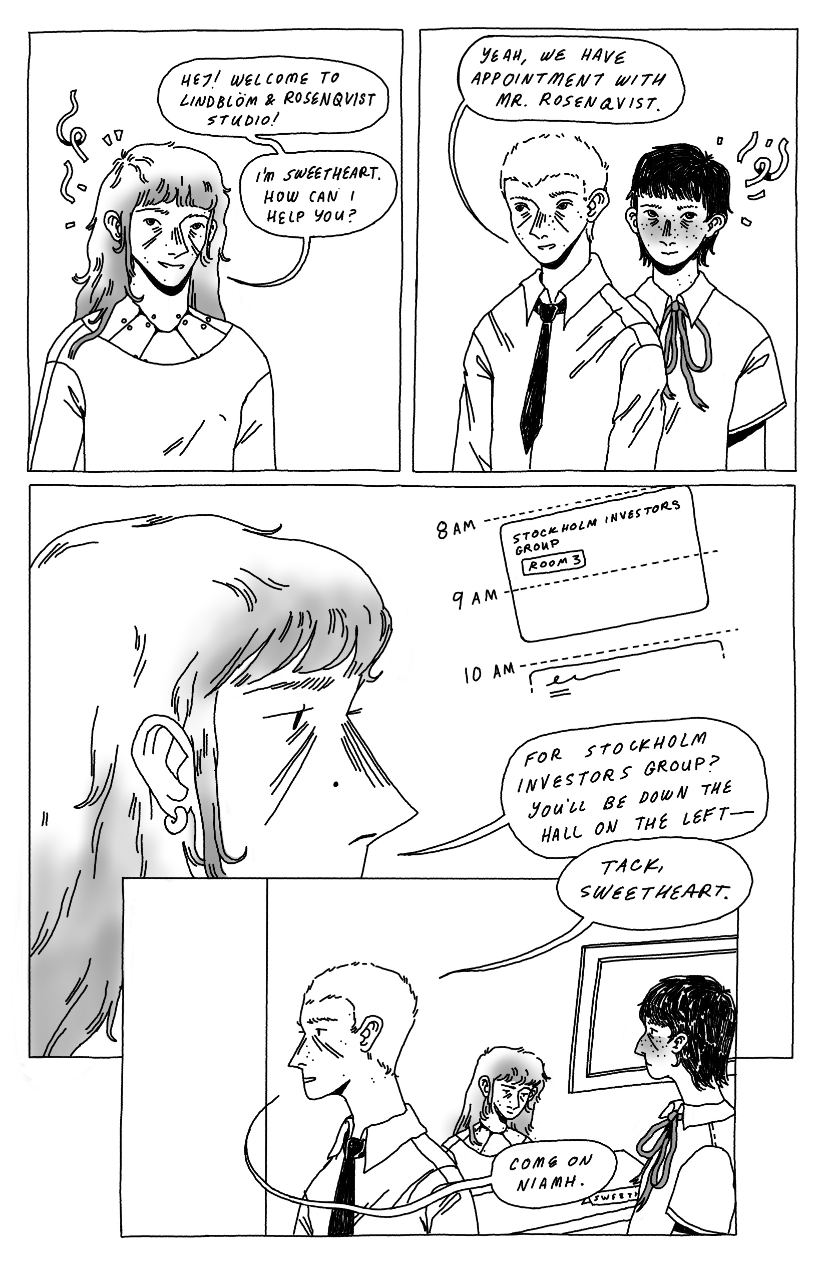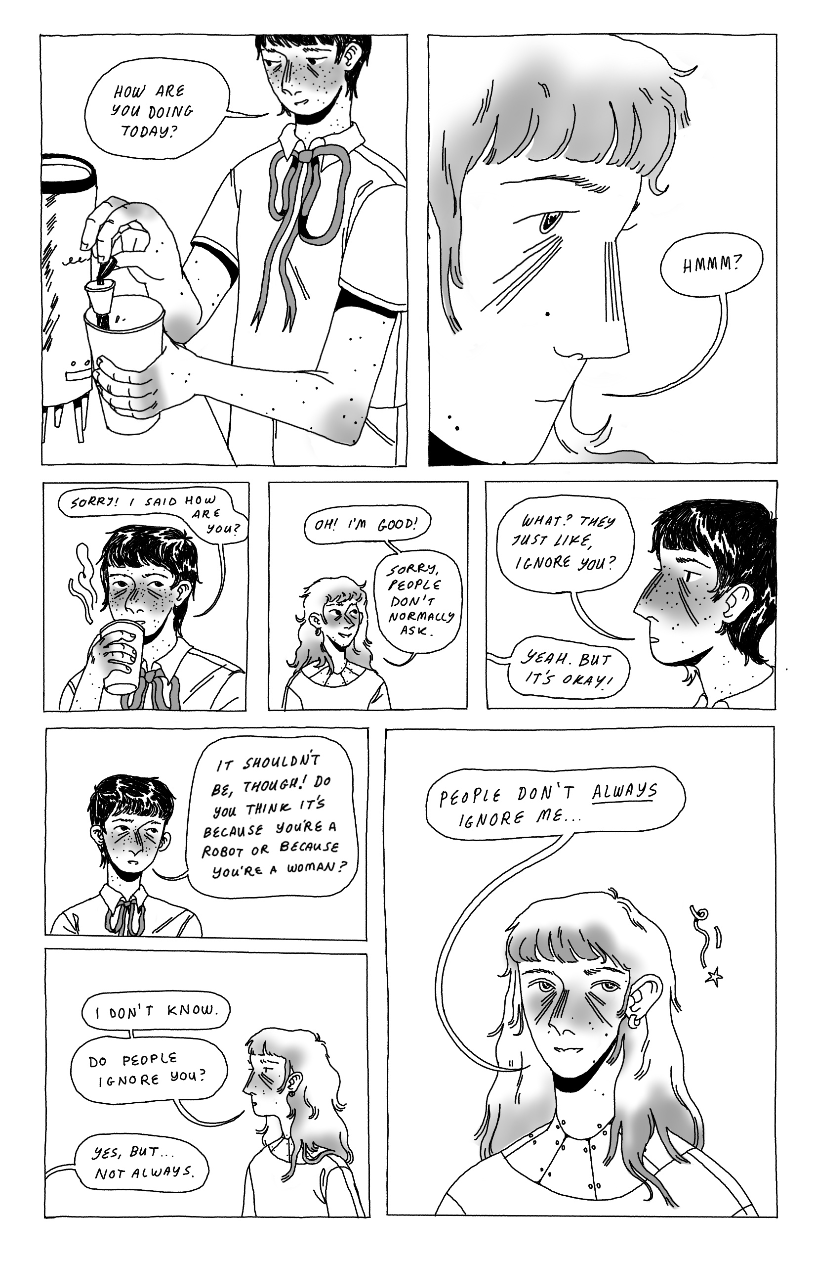 An unfinished comic about a robot secretary whose interactions with a young assistant throw her life out of balance.